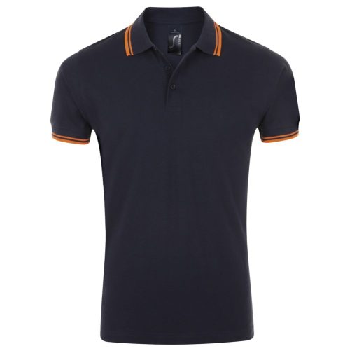 Рубашка поло мужская Pasadena Men 200 с контрастной отделкой, темно-синяя (navy) с неоново-оранжевым