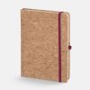Блокнот в твердой обложке из натуральной неокрашенной пробки, дополнен цветными петлей-резинкой для ручки, ляссе и резинкой на обложку.