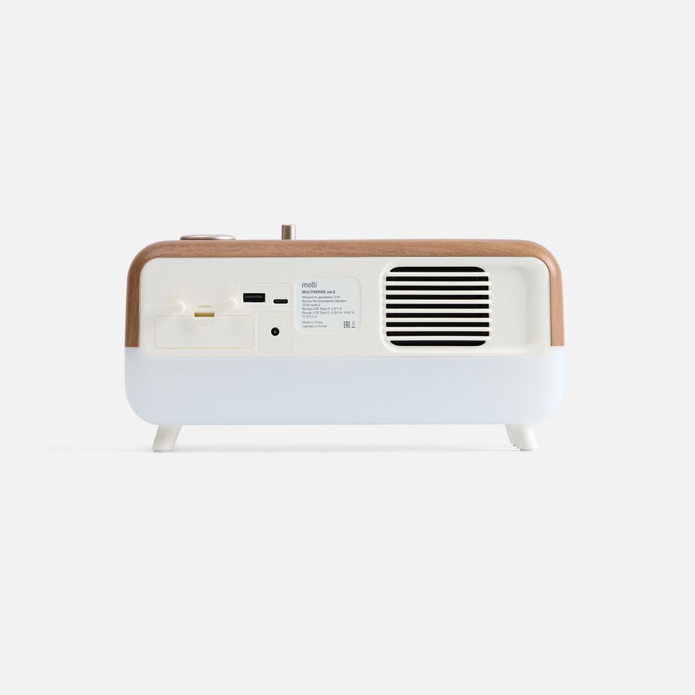 Multiverse может транслировать музыку с телефона или наполнить пространство звуками природы, показывать точное время или будить по утрам, служить стильным ночником или интерьерным светильником, а также заряжать другие устройства по беспроводному стандарту QI или через порты USB и USB Type-C на задней стенке.