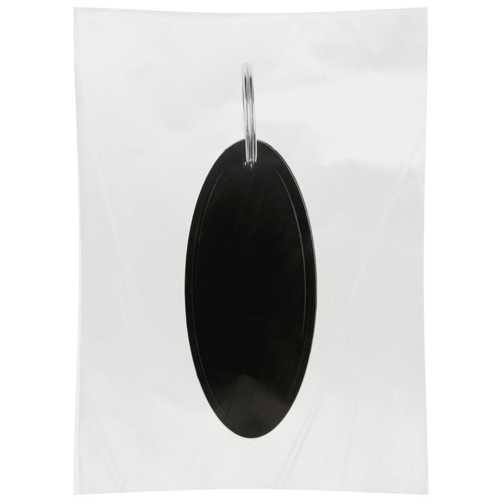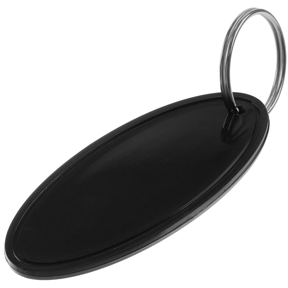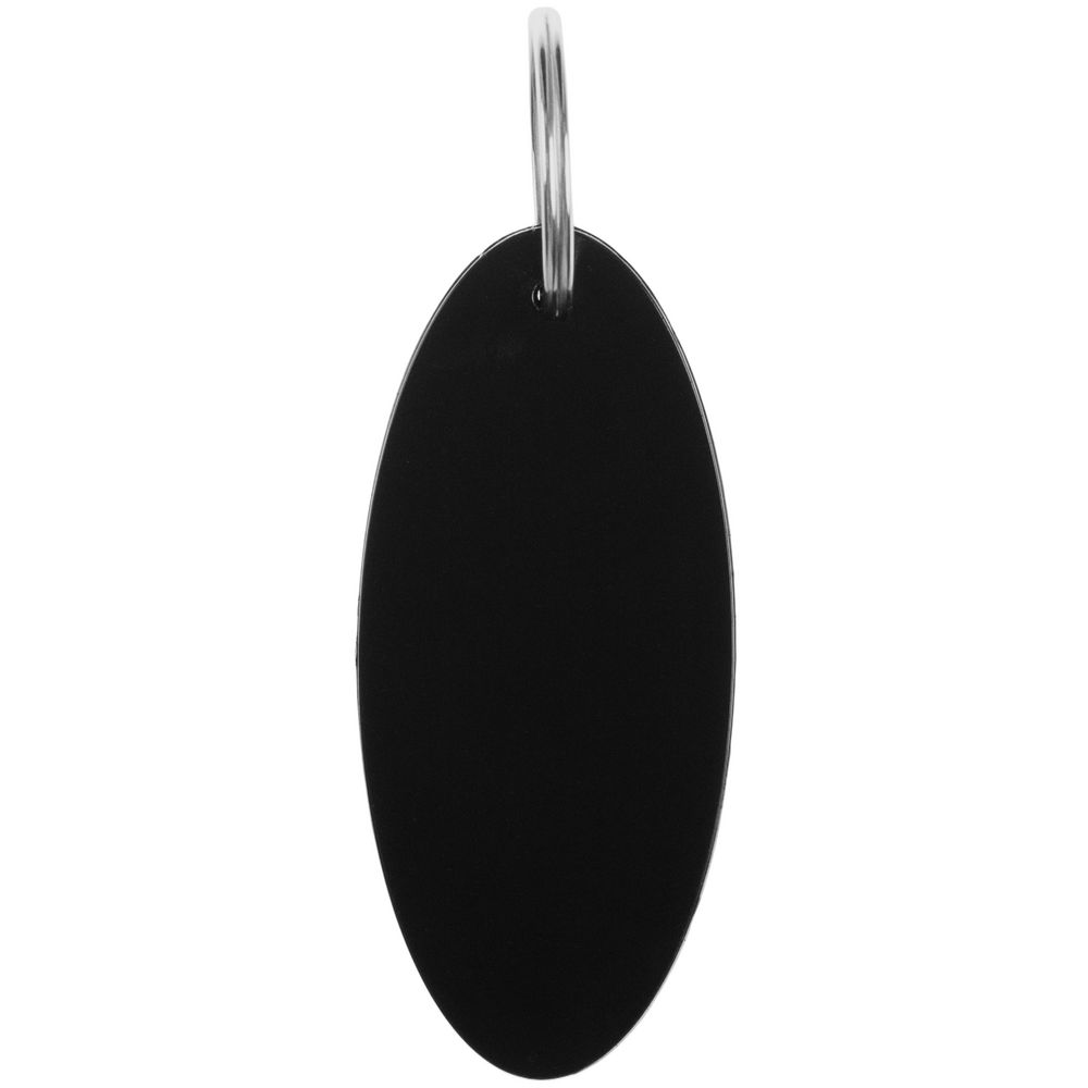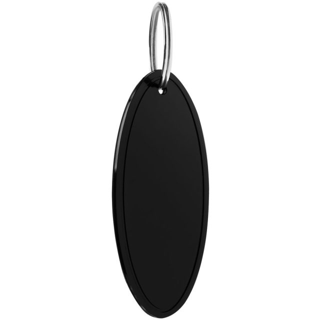 Лаконичный брелок из полипропилена с металлическим кольцом.