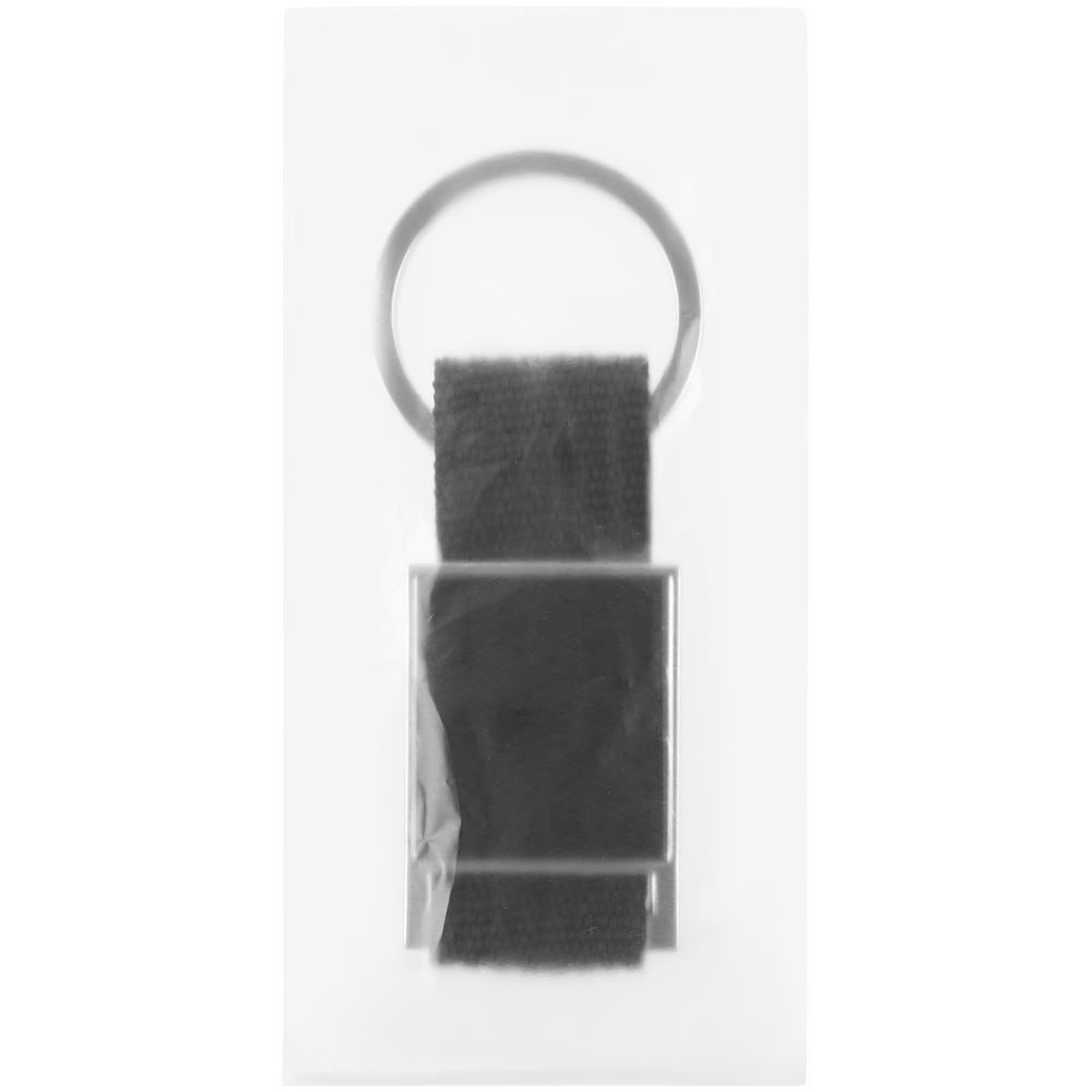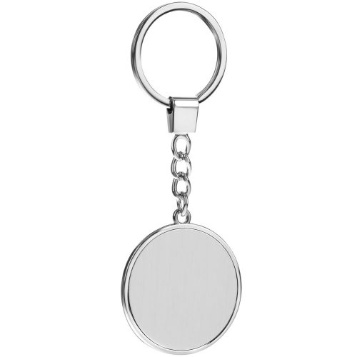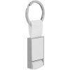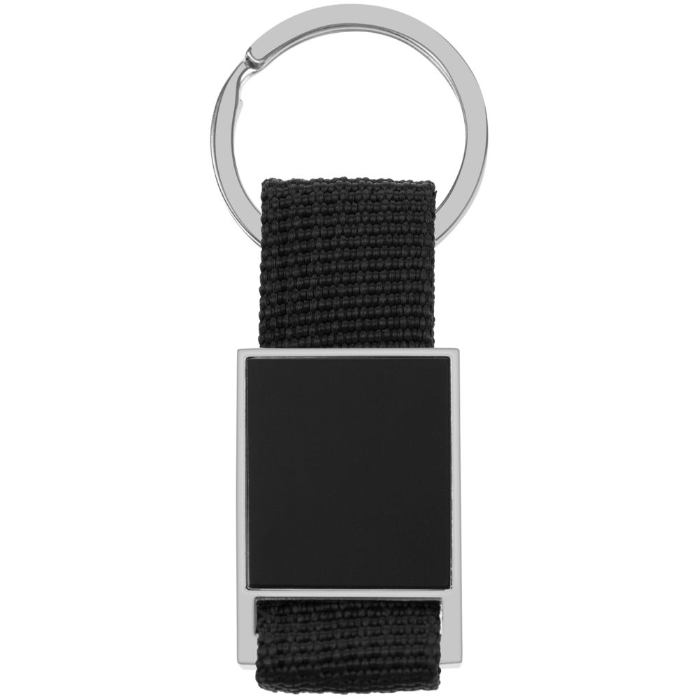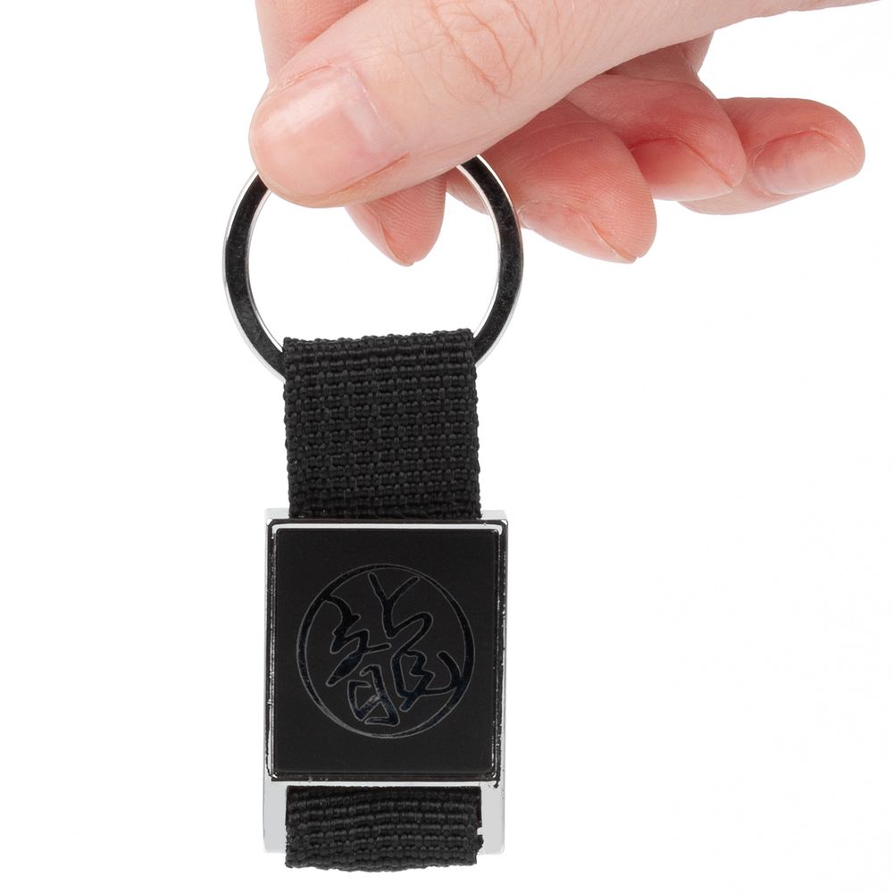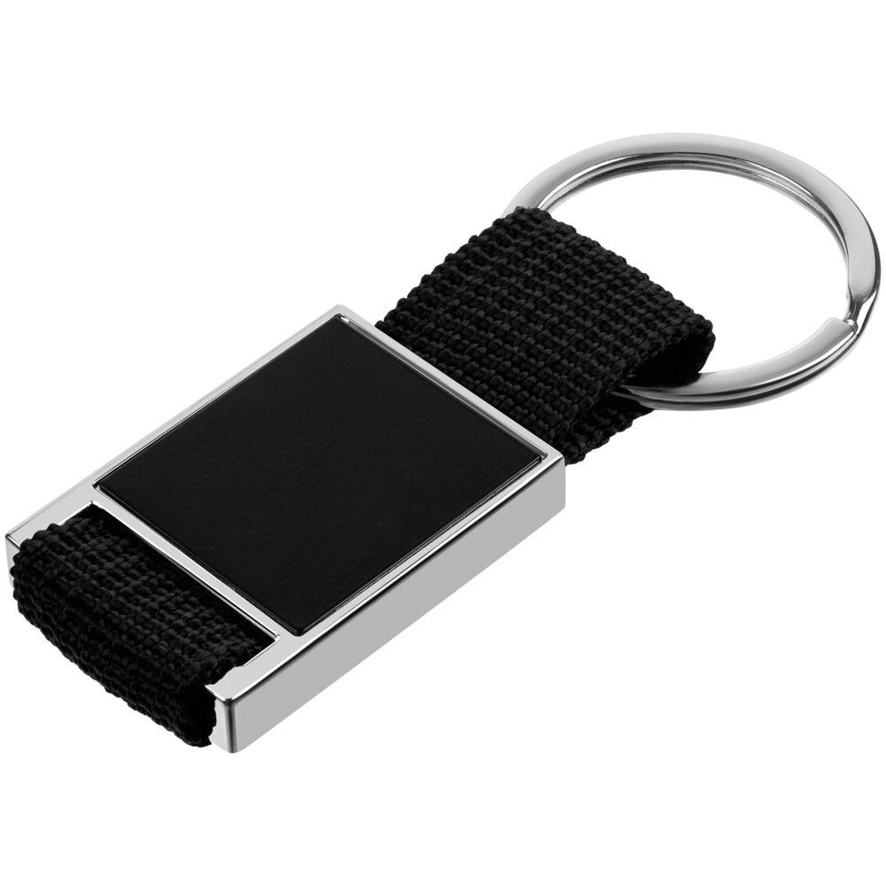 Элегантный металлический брелок с тканевой вставкой.