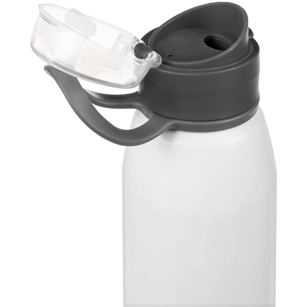 Легкая бутылка для спорта с откидной крышкой и силиконовой петлей для удобной транспортировки.