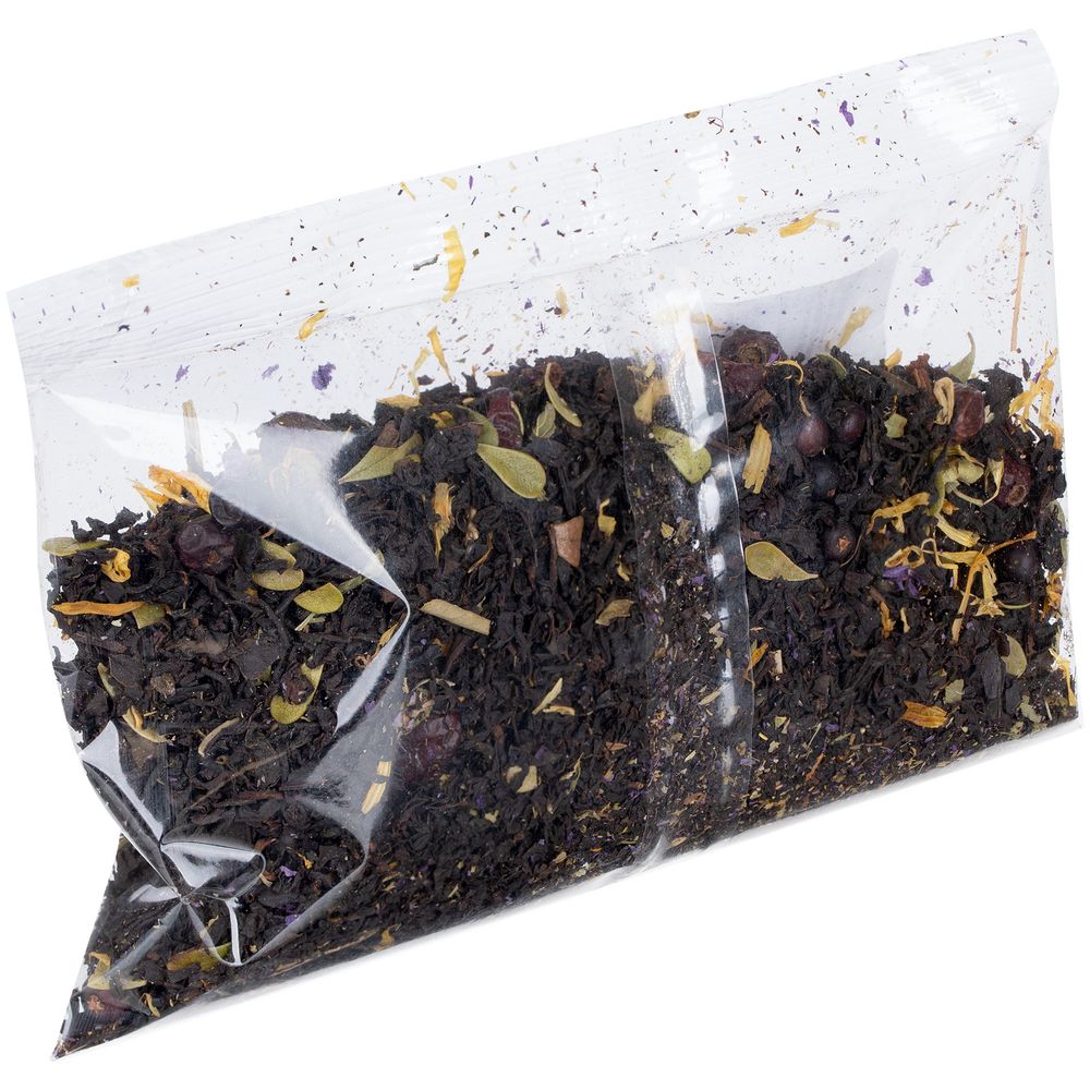 Черный индийский чай, лист брусники, мальва, календула, можжевельник, боярышник, клюква, мята, ароматизирован маслами.