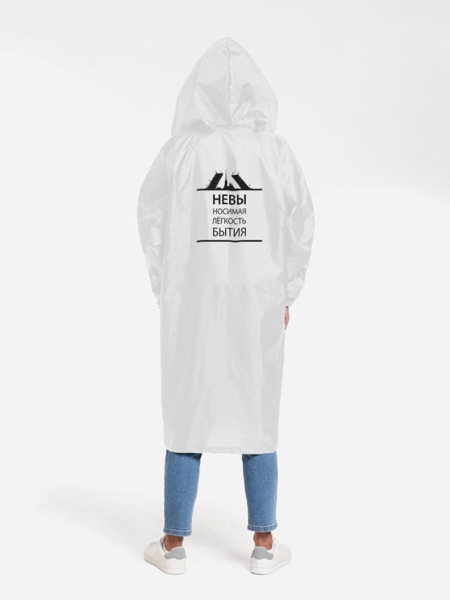 Плащ-дождевик истинного петербуржца, знатока мировой литературы и классики кинематографа. Прекрасно подойдет и для утонченного интеллектуала, и для любого очарованного странника, гостя Петербурга, нечаянно влюбившегося в Северную Венецию.Плащ-дождевик на кнопках с капюшоном.