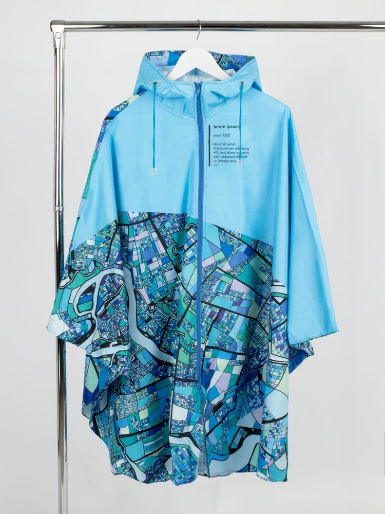 Полноцветная печать методом сублимации с лицевой стороны дождевика и мешка для хранения входит в стоимость изделия.