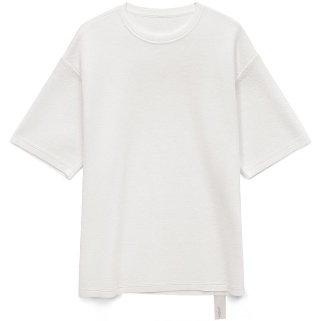 Siluetti Volumica — плотный вязаный джемпер-футболка прямого кроя с круглым вырезом и спущенной линией плеча. Фирменная бирка из силиконовой ленты станет интересной деталью, привлекающей внимание на фоне общей лаконичности модели.