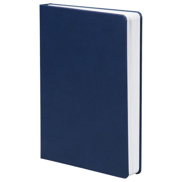 Ежедневник с твердой обложкой, выполнен из материала Latte, темно-синий XX, дополнен ляссе в цвет обложки.