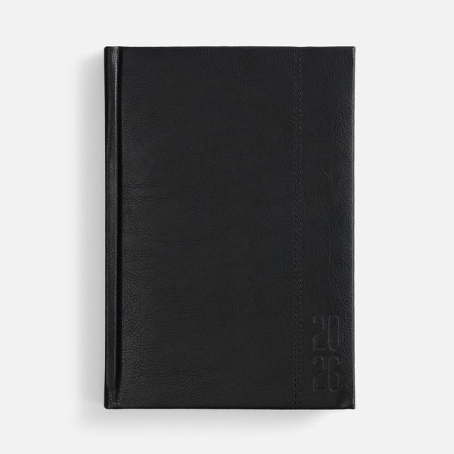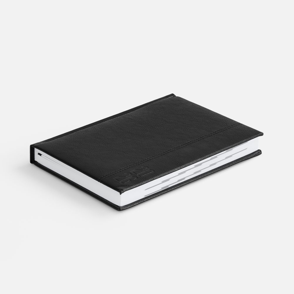 Ежедневник с твердой обложкой с поролоном из искусственной кожи, дополнен декоративной строчкой, капталом и ляссе в цвет ежедневника.