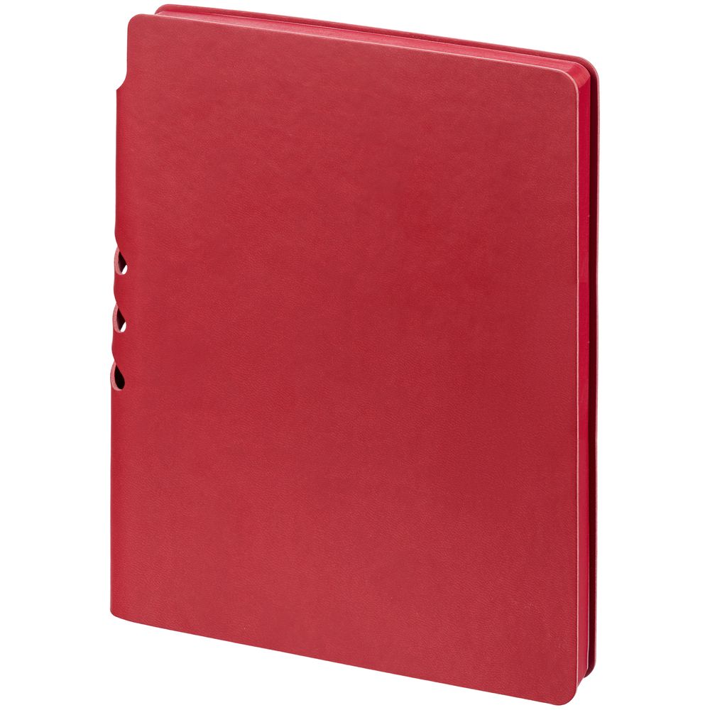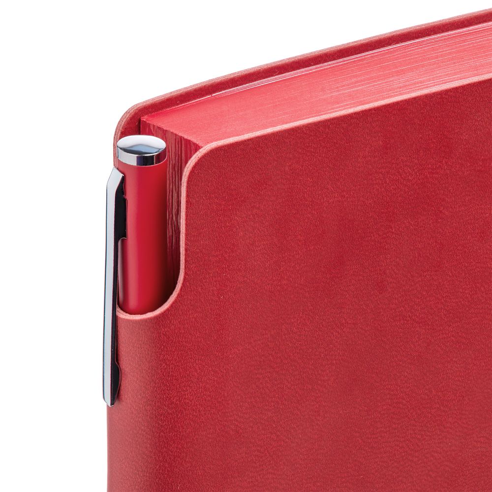 Гибкая обложка ежедневника выполнена из материала Latte, красный РР. Внутри корешка — специальное место для крепления ручки размером до 15х0,9 см.