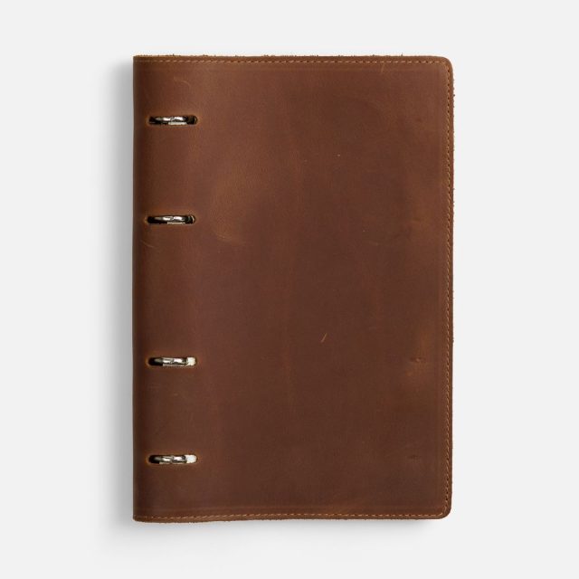 Ежедневник с блоком на кольцах, выполнен из натуральной кожи.