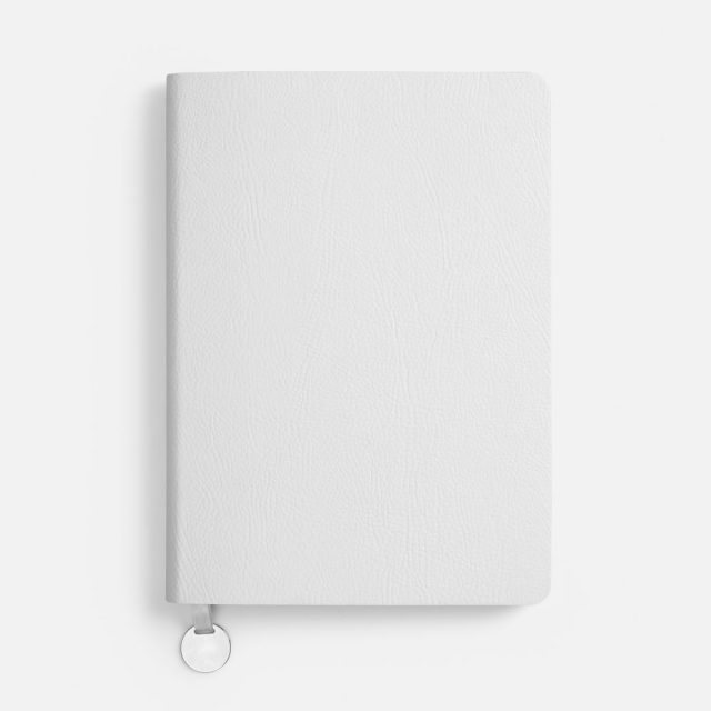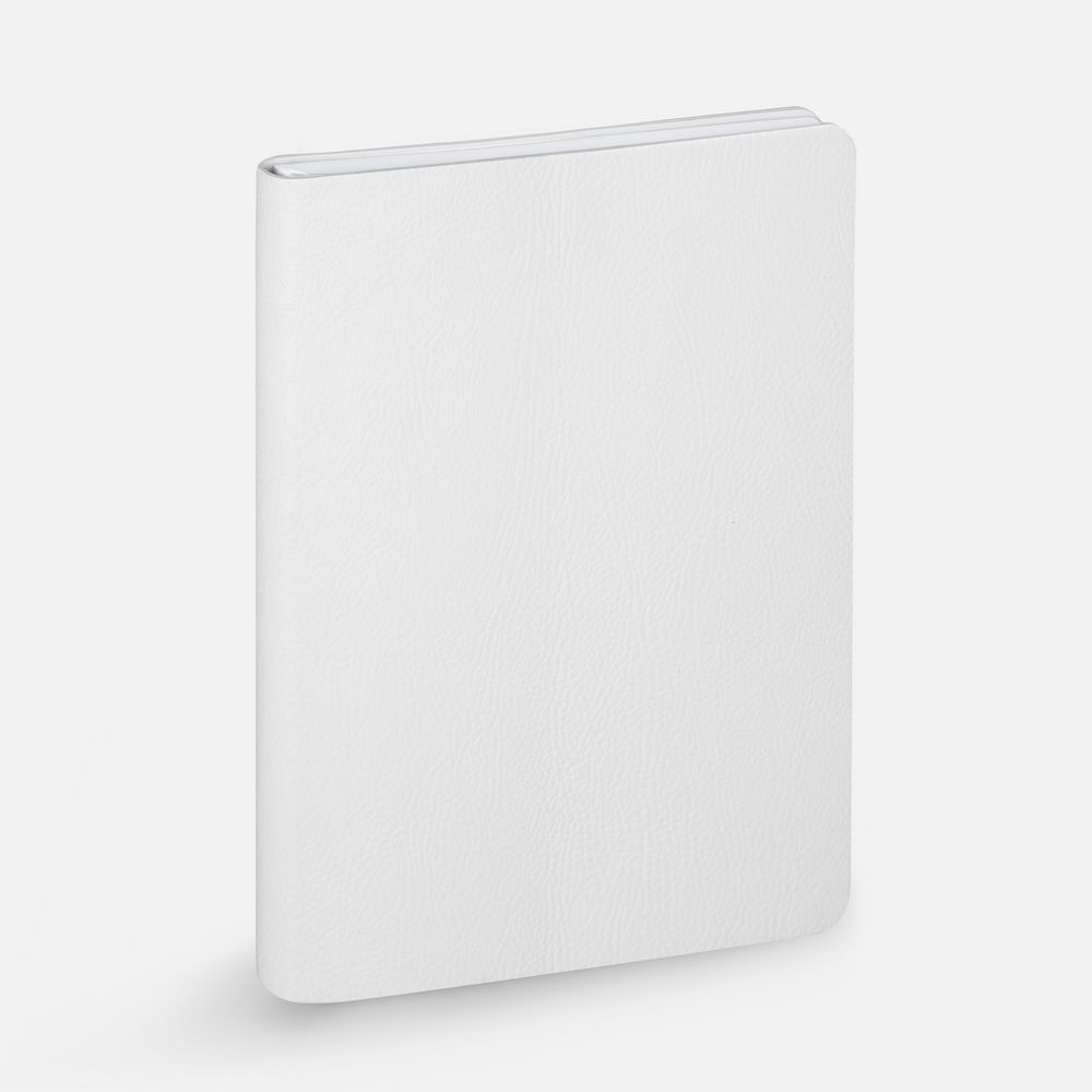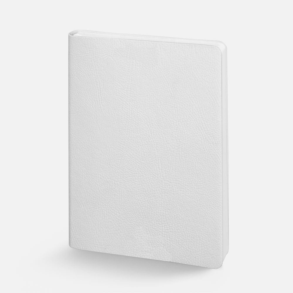 Ежедневник с гибкой обложкой, выполнен из материала Prestige, белый BB, дополнен ляссе в цвет обложки с металлическим шильдом.