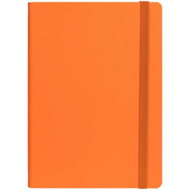 Ежедневник с твердой обложкой выполнен из материала Nice Touch, оранжевый ОО, и дополнен резинкой шириной 1 см и ляссе оранжевого цвета.