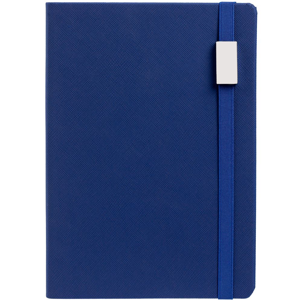 Ежедневник с полутвердой обложкой выполнен из материала Nice Touch, синий НН, и дополнен резинкой шириной 1 см с металлическим шильдом и ляссе синего цвета.