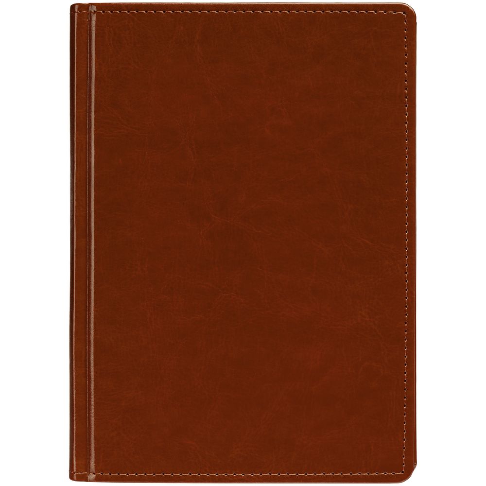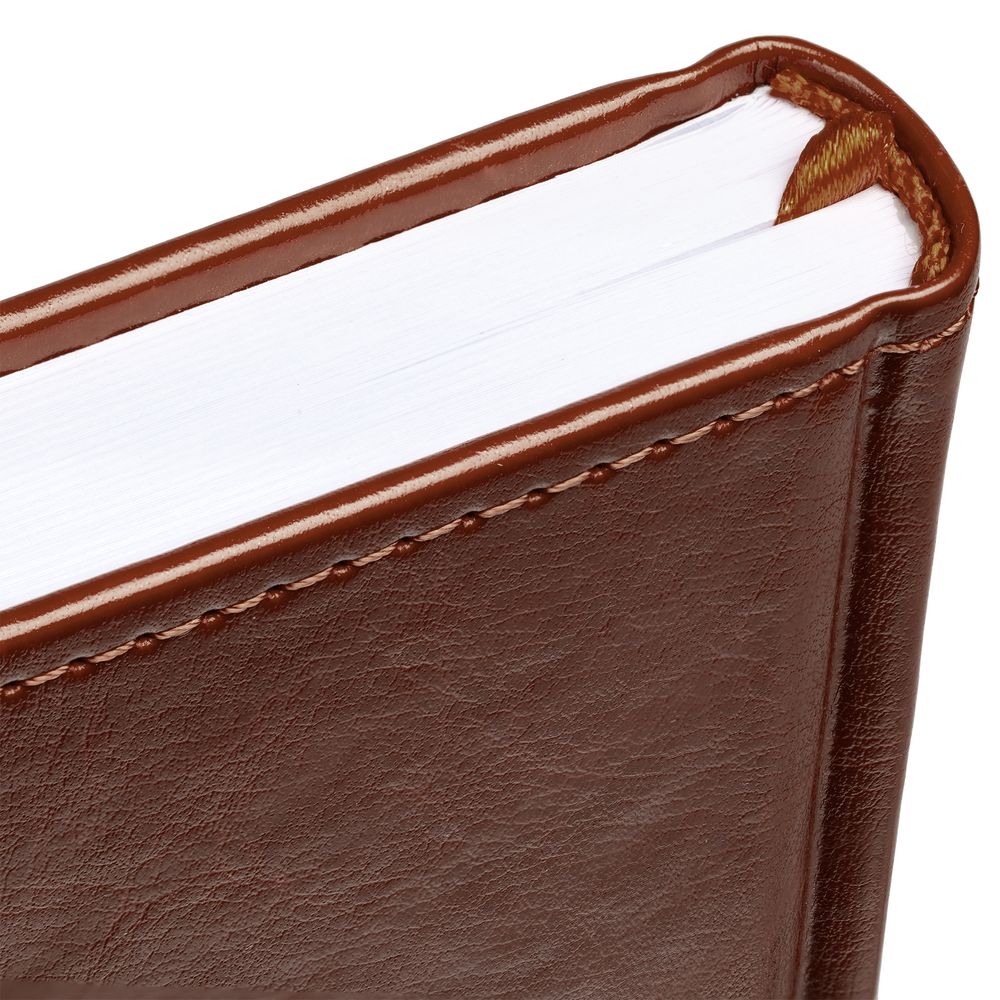 Ежедневник с твердой обложкой без поролона, выполнен из материала Nebraska, коричневый RR, дополнен ляссе и капталом в цвет обложки.