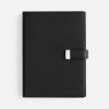 Ежедневник в мягком переплете со съемной обложкой, дополнен застежкой-хлястиком с металлическим шильдом на кнопке, двойным ляссе и капталом.