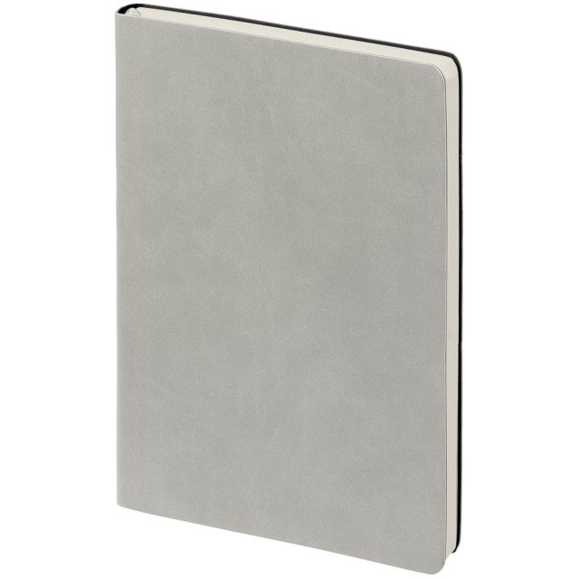 Ежедневник с гибкой обложкой, выполнен из материала Latte, серый, дополнен ляссе в цвет обложки.