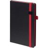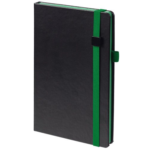 Ежедневник с полутвердой обложкой, выполнен из материала Waltz, черный АА, дополнен оранжевой резинкой с металлическим шильдом и ляссе.