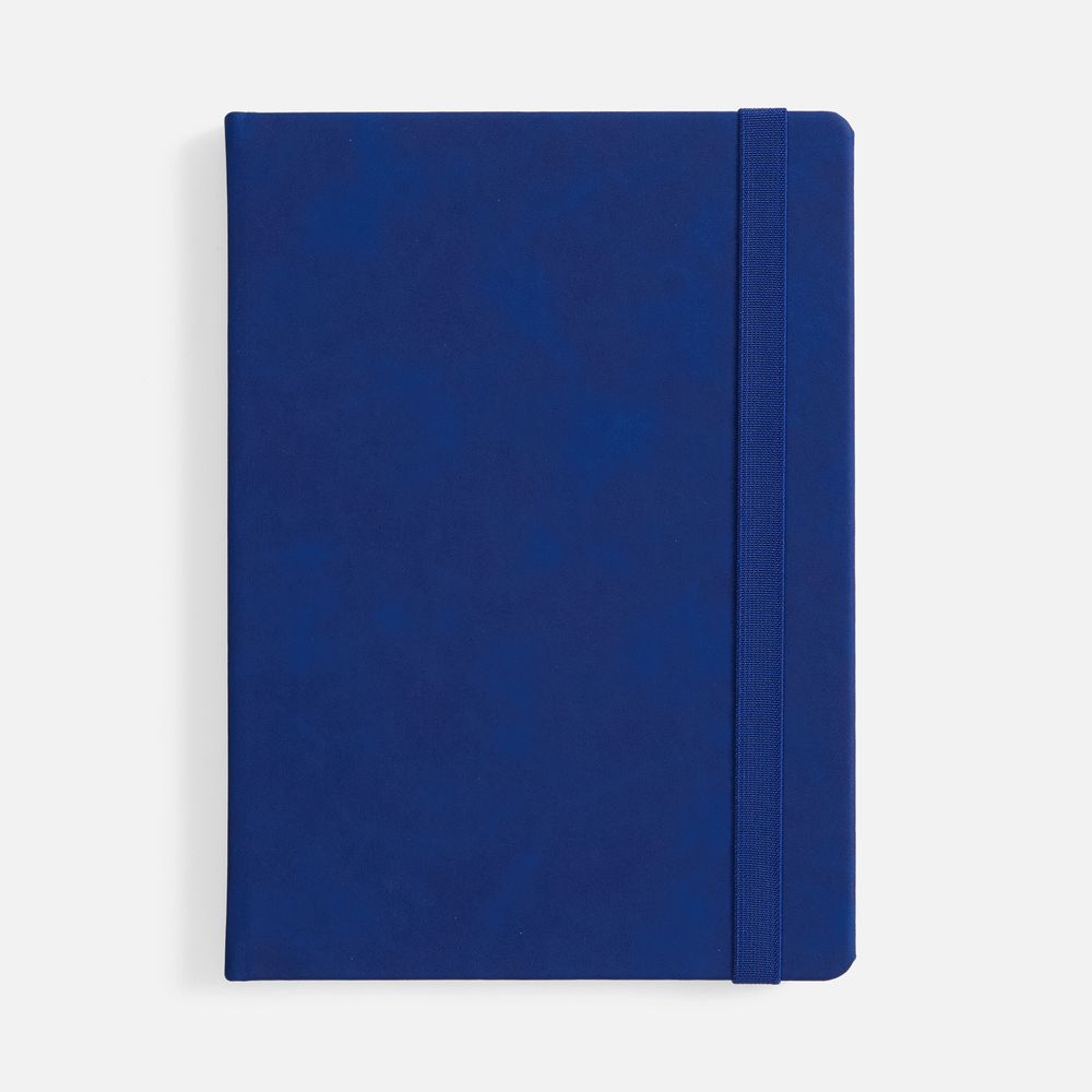 Ежедневник с твердой обложкой, выполнен из материала Nubuck Touch, синий НН, дополнен ляссе темно-синего цвета.
