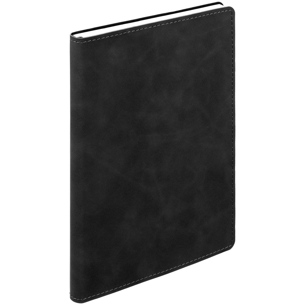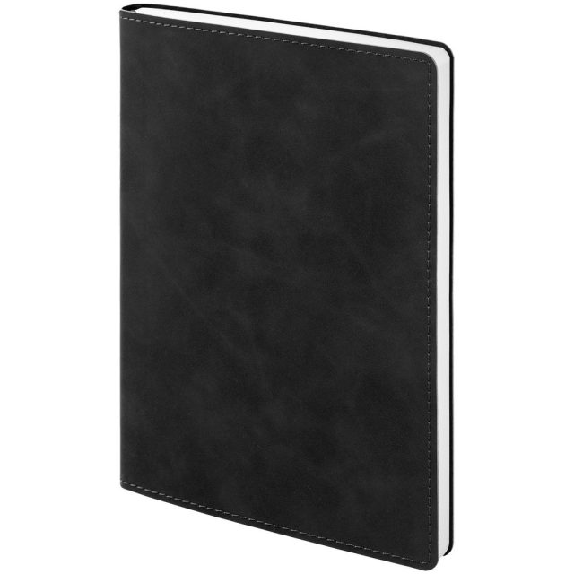 Ежедневник с гибкой обложкой, выполнен из материала Nubuck Touch, черный AA, дополнен ляссе в цвет обложки.