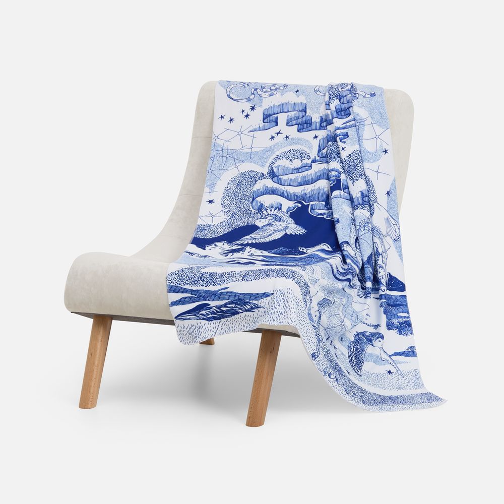 Оформление этого пледа — тоже отдельная магия, где тончайшими линиями, словно чернилами, расписано полотно. Так создается целый сюжет с чарующей историей, после которой обязательно захочется сказать: «Волшебство повсюду!».