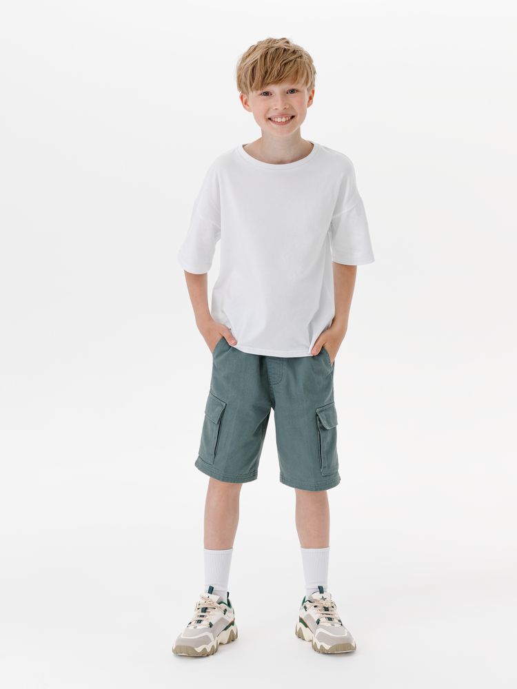 Детская футболка оверсайз из гребенного хлопка с эластаном не стесняет движений и создает модный силуэт.