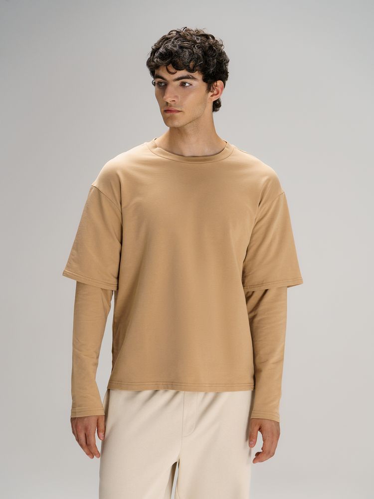 Футболка оверсайз с двойным рукавом Kosmos, бежевая