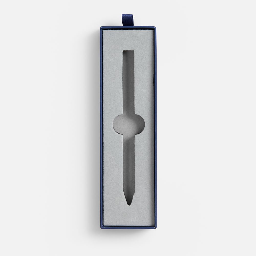 Картонный футляр с покрытием софт-тач с флокированным ложементом для одной ручки.