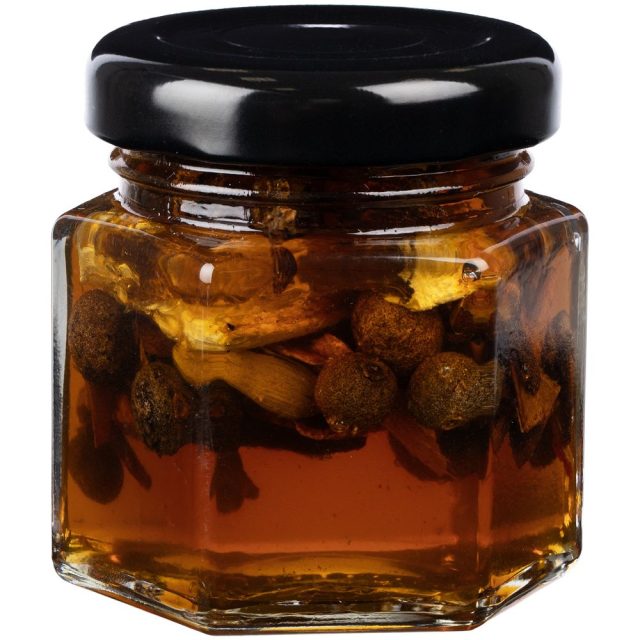 В состав входят специи, традиционно используемые для приготовления глинтвейна: корица, сушеный апельсин и лимон, кардамон, бадьян, мускатный орех, душистый перец, гвоздика. Для приготовления пряного напитка достаточно 1 бутылки вина и 1 баночки меда, но вы также можете добавить фрукты и дополнительные ингредиенты по вкусу.