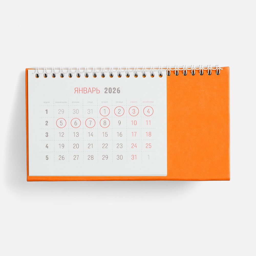 Настольный, перекидной календарь-домик выполнен из материала Latte, оранжевый ОО.