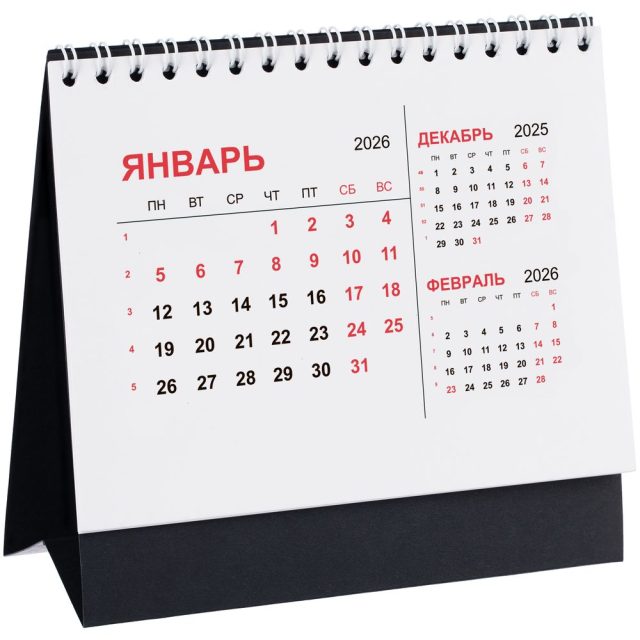Компактный настольный календарь с датировкой на 2026 год.