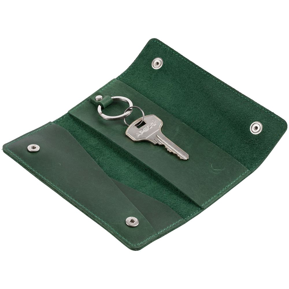 Ключница изготовлена из плотной и прочной натуральной кожи Crazy Horse. На ее поверхности довольно быстро появляется неповторимый рисунок из потертостей и складок — следы времени придают материалу изысканный винтажный вид, делая каждый предмет уникальным в своем роде. Так изделия, подобно благородным напиткам, со временем приобретают лишь большую ценность.