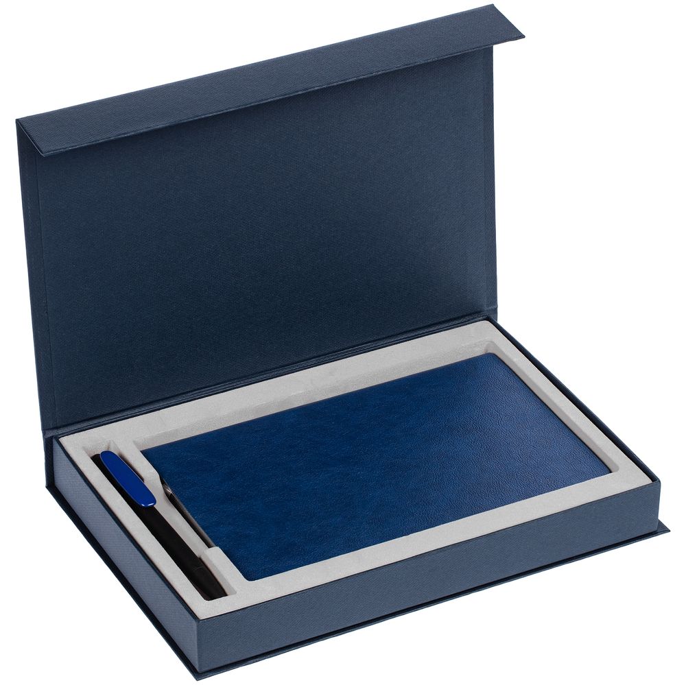 Коробка Silk с ложементом под ежедневник и ручку, ver. 2, темно-синяя