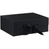 Коробка из переплетного картона, кашированного крафтовой бумагой. Крышка на двух магнитах дополнительно фиксируется репсовой лентой.Толщина картона 2 мм.