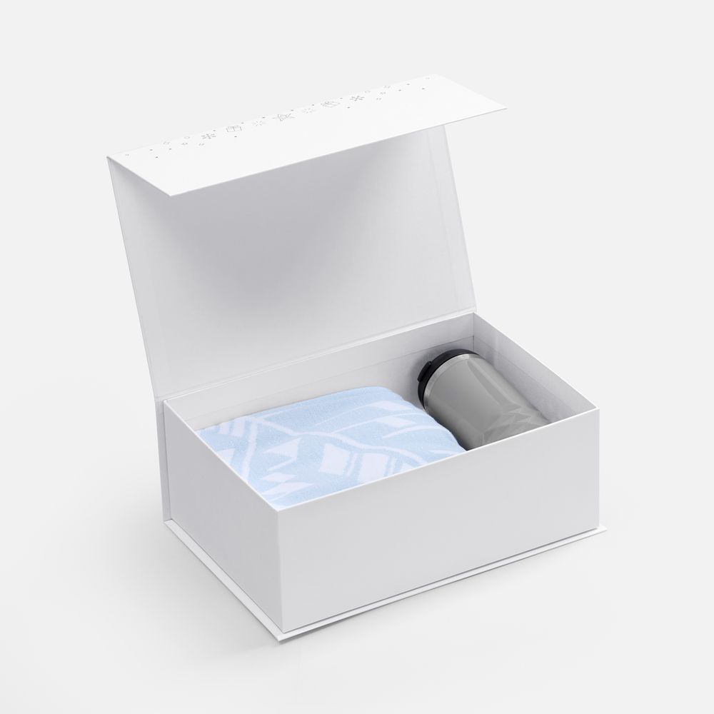 Подарочная коробка Snowlace с новогодним паттерном станет стильным дополнением к праздничному презенту.