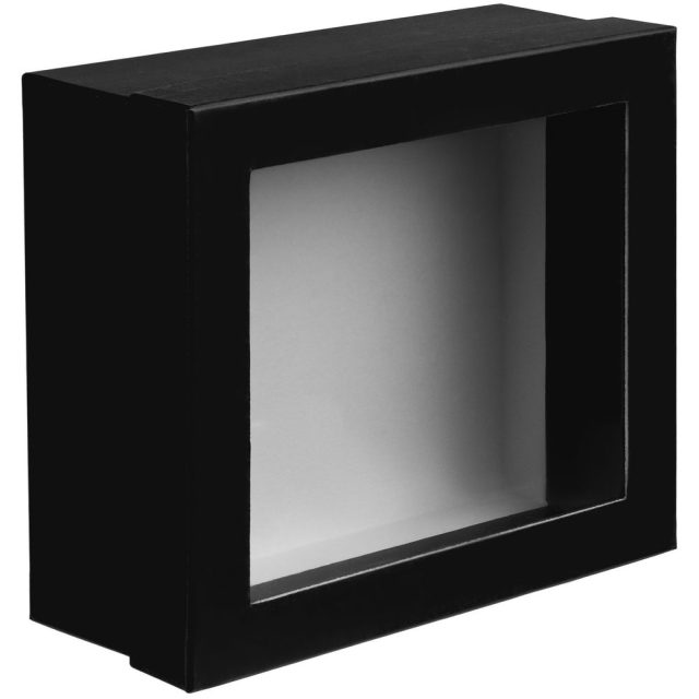 Коробка из переплетного картона с прозрачным пластиковым окном. Каширована дизайнерской бумагой Malmero.