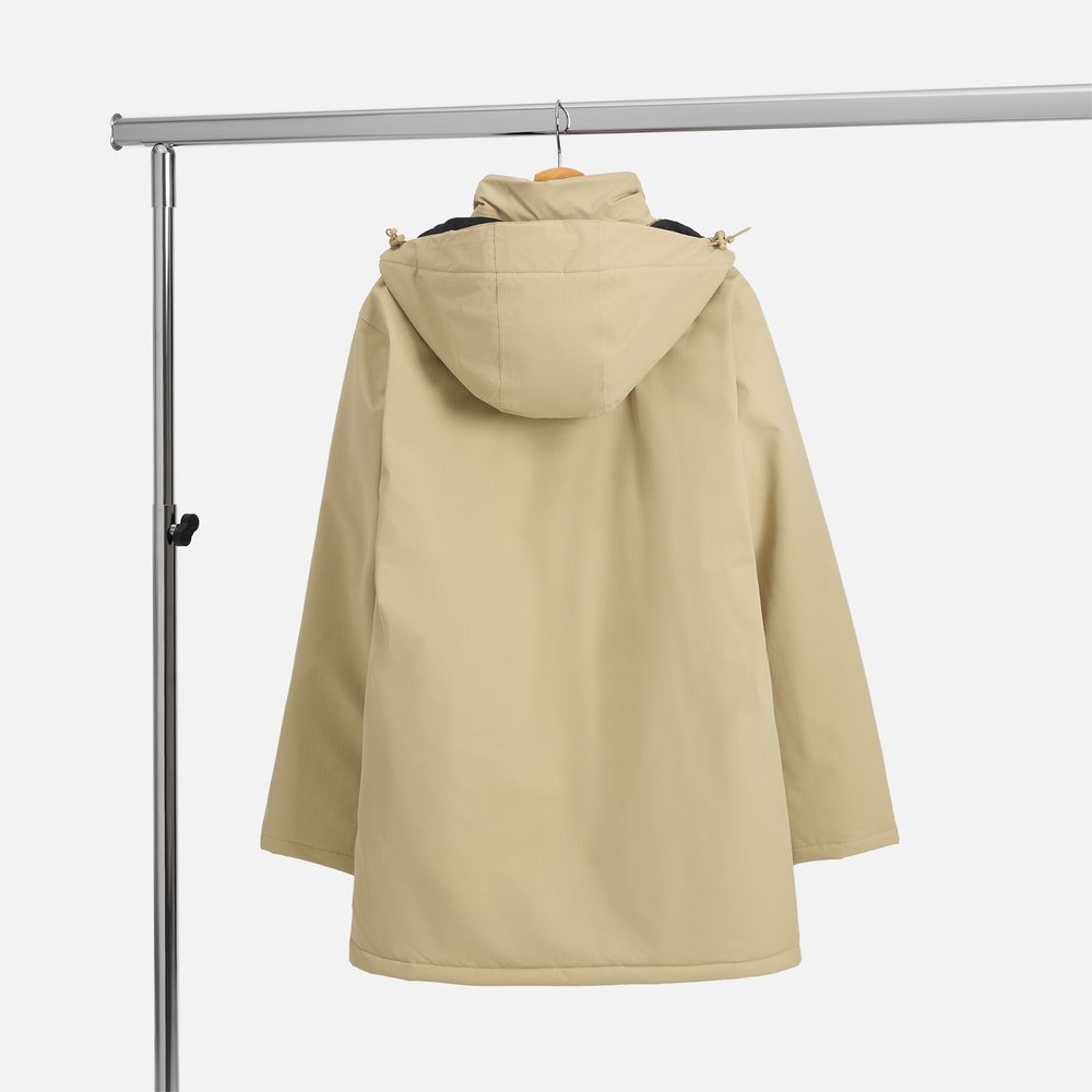 - Отстегивающийся капюшон с утяжкой и кнопками для плотного прилегания и защиты горла