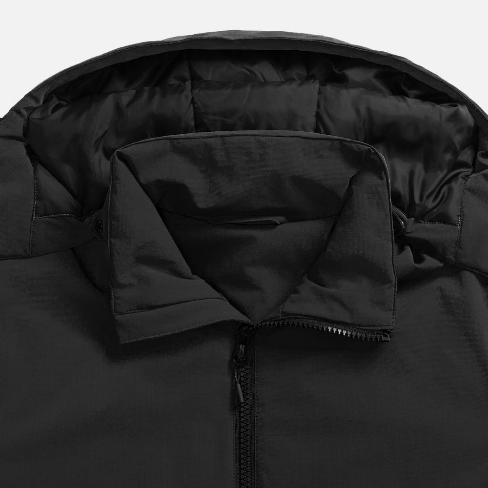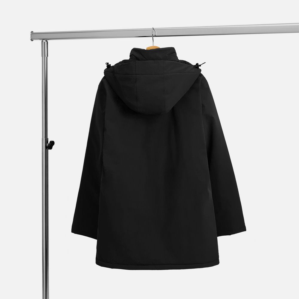 - Отстегивающийся капюшон с утяжкой и кнопками для плотного прилегания и защиты горла