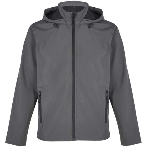 Мужская куртка софтшелл на молнии и с капюшоном.