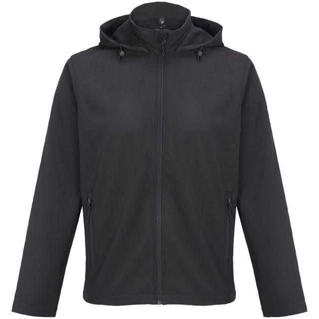 Мужская куртка софтшелл на молнии и с капюшоном.