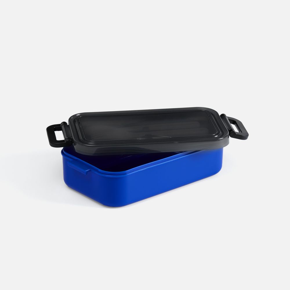 Удобная конструкция с крышкой на защелках обеспечивает надежную фиксацию. Специальное отделение под крышкой позволяет хранить столовые приборы, освобождая дополнительное пространство в сумке.