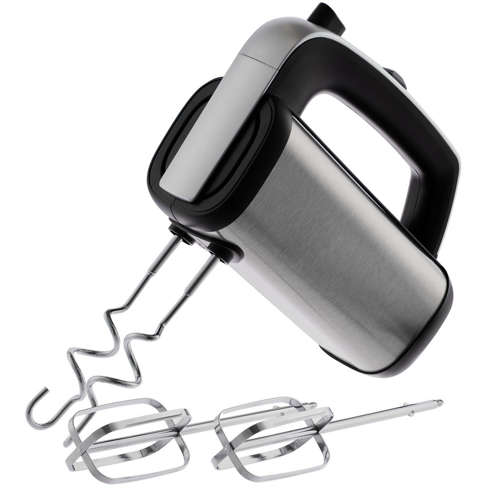 В комплект входят венчики для взбивания крема, мусса, суфле, яичных белков и коктейлей, а также крюкообразные насадки, предназначенные для замешивания теста для бисквита, блинов и панкейков.