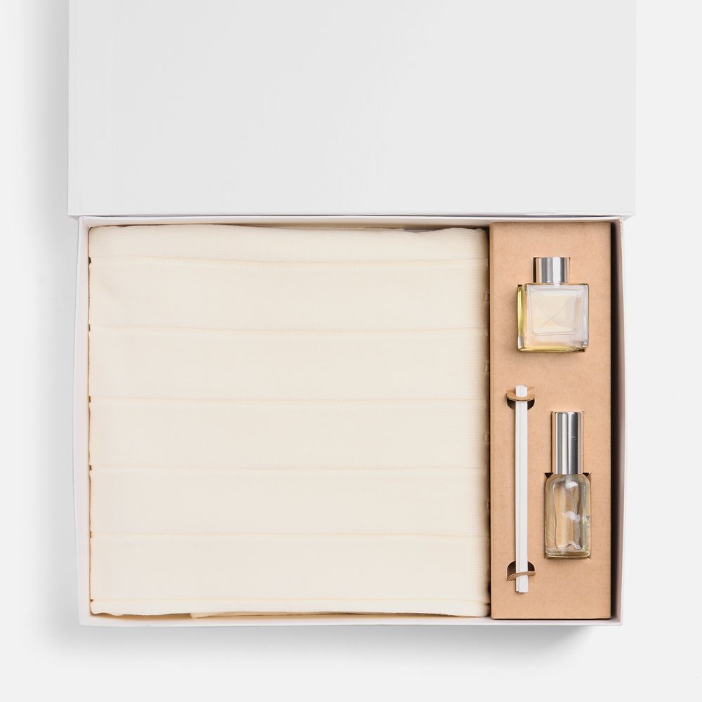 Мягкий плед с элегантным узором подарит комфорт и тепло, а стильный диффузор наполнит пространство нежными, свежими нотами, превращая каждый момент в маленький ритуал наслаждения.
