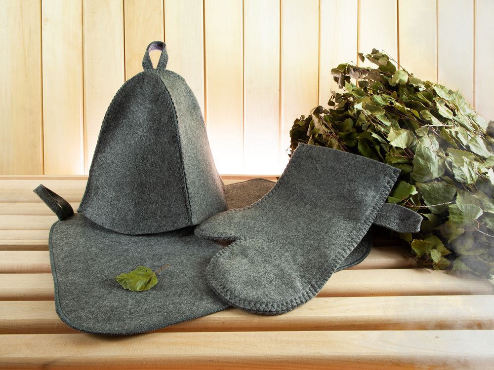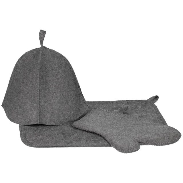 Банный набор «Парилка» станет отличным подарком для любителей отдыха в бане или сауне. Войлочная шапка защитит голову и волосы от высоких температур при банных и SPА-процедурах, коврик позволит с комфортом отдыхать на горячих полках, а рукавица — безбоязненно поддать пару или закрыть заслонку печи.