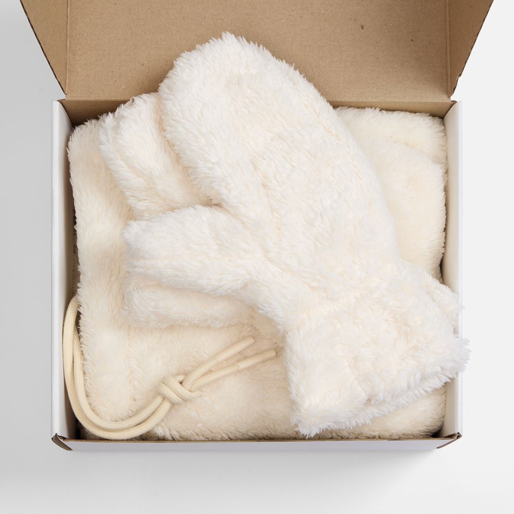 Уютные аксессуары Flocky из длинноворсового флиса окутают теплом и защитят не только от холодного ветра, но и от грустных мыслей. Мягкие и пушистые, они подойдут как для городских прогулок, так и для активных занятий зимними видами спорта. Утягивающий шнур в балаклаве и резинка на уровне запястья варежек позволяют комфортно регулировать посадку.