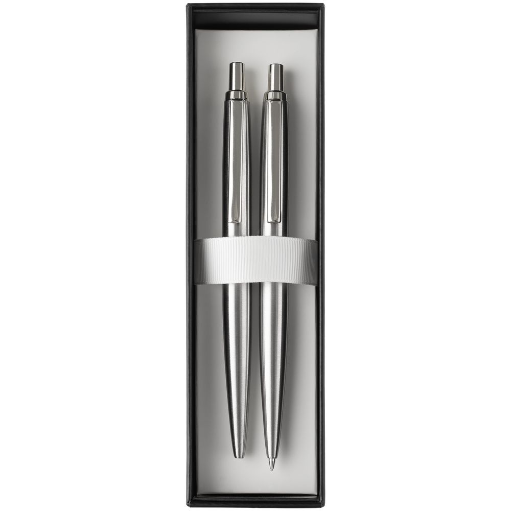 Механический карандаш и ручка Poetica — это благородная классика и элегантность в металлическом корпусе. Эргономичная форма и выигрышный серебристый оттенок корпуса делают элементы набора неотъемлемой частью делового образа и персонального стиля.