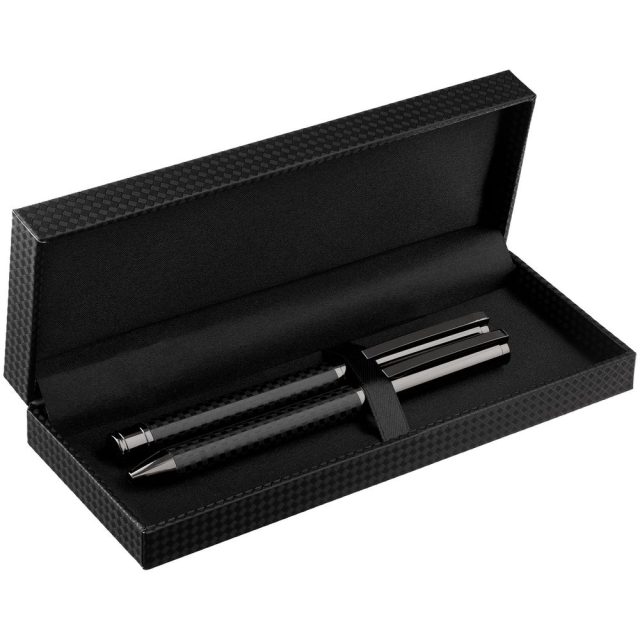 Покрытие корпуса ручки и роллера ассоциируется с современными технологиями, автомобильной и промышленной эстетикой, что добавляет сдержанной элегантности всему набору.
