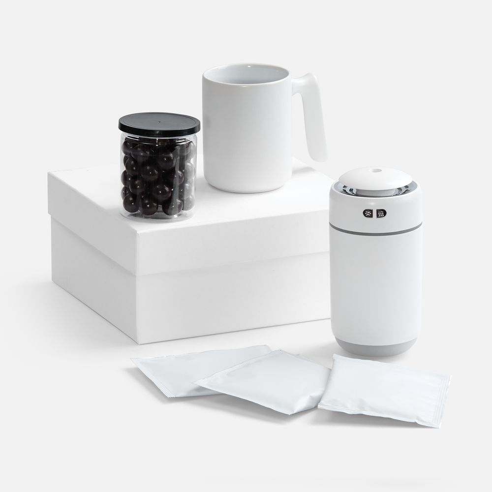 Набор «Микроклимат» создаст идеальную атмосферу — для бодрости или расслабления! Увлажнитель смягчит воздух, поможет снять усталость и мыслить ясно. В удобной керамической кружке Visari любимый напиток будет дольше оставаться теплым, дрип-пакеты позволят легко приготовить вкусный кофе без лишних устройств, а фундук в шоколаде станет изящным завершением настоящего ритуала наслаждения.