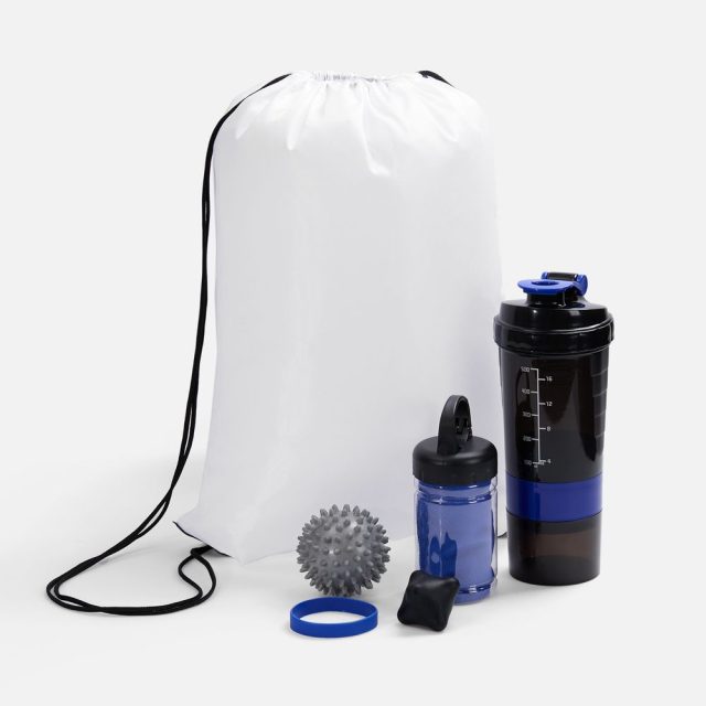 Чтобы оздоровительные фитнес-мероприятия приносили только удовольствие, в практичном рюкзаке-мешке собраны продуманные аксессуары: охлаждающее полотенце, спортивный шейкер для смешивания самых полезных коктейлей, массажные мячики для самостоятельного миофасциального релиза после занятий, а также силиконовый браслет, без которого не обойтись членам клуба.