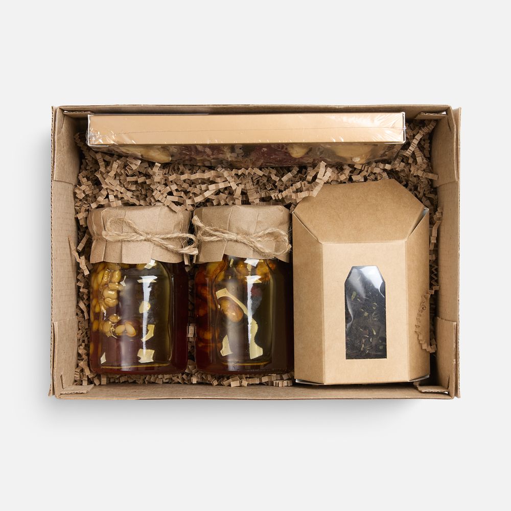 Чаепитие — процесс крайне важный, необходимый и, самое главное, приятный каждому. Не секрет, что чай оказывает тонизирующее действие на организм, успокаивает и укрепляет здоровье. Не менее, а, пожалуй, и более ценными свойствами обладает самое полезное творение природы — мед. Приятный на вкус и вместе с тем важный для здоровья продукт — то, что оценят и полюбят многие. Без сомнений, чайный набор с медом и ореховыми снеками — это невероятно ароматный, полезный и очень вкусный подарок.