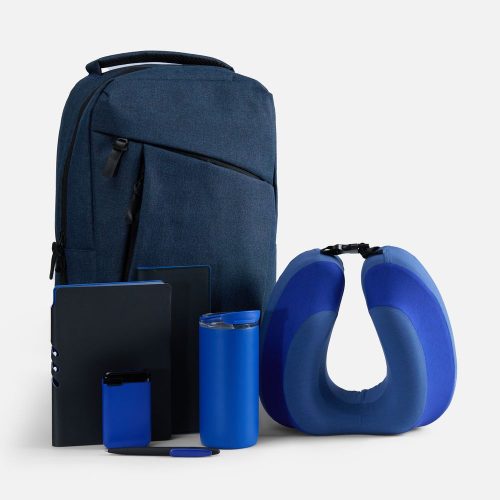 Этот стильный комплект включает в себя все необходимое для комфортных путешествий: практичный рюкзак, мощный внешний аккумулятор, уютную дорожную подушку и термостакан.